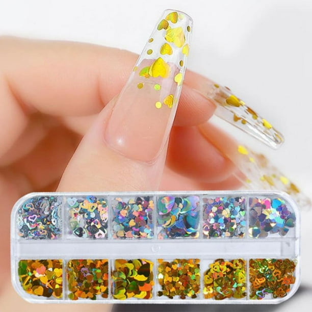 Heart Shaped Glitter Nail Art Sequins 12 Colors Set Flakes Glitter Colorful Confetti Sticker Manicure Nail Art Supplies Decals Decoration Glitter Walmart Com